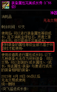 需要注意的是,限制等级区间的装备完美成长券4项词条需要均在范围区间内,而非综合总等级。