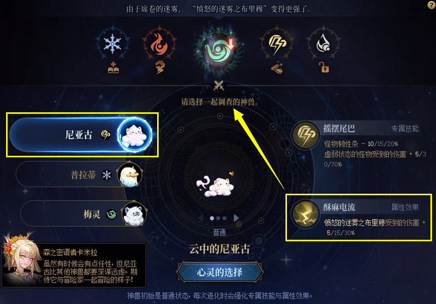 此时选择尼亚古,可使增加最终领主受到的伤害。