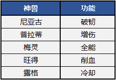 除了上文提及的克制效果外,不同的神兽还能提供不同的BUFF效果。