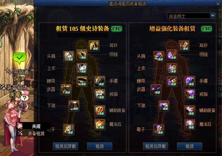 活动期间内,100级及以上角色,点击赛丽亚旅馆暂驻Npc【美罐】即可租赁105级史诗装备与深渊之鳞装备。自动识别租赁角色为输出职业还是辅助职业,赋予租赁装备对应附魔。