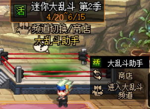 点击赛丽亚旅馆暂驻Npc【大乱斗助手】完成活动任务后,切换频道即可体验小游戏。