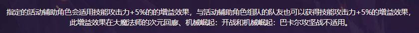 可指定1名辅助职业与1名全职业为活动角色(共2个名额),指定后完成成长任务与每周任务,获取大量角色名望值成长材料,与伤害增益效果。