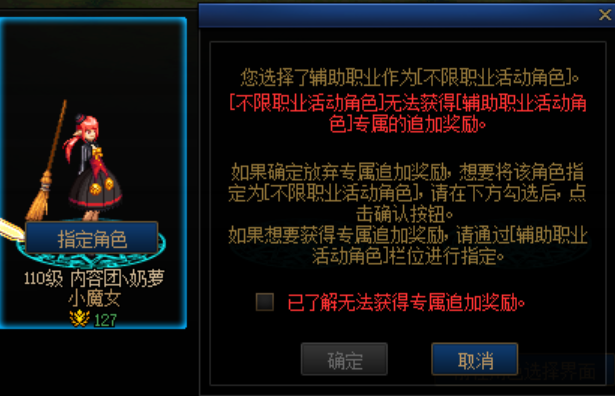 *当辅助职业指定为不限职业活动角色时,无法领取专属辅助职业奖励。