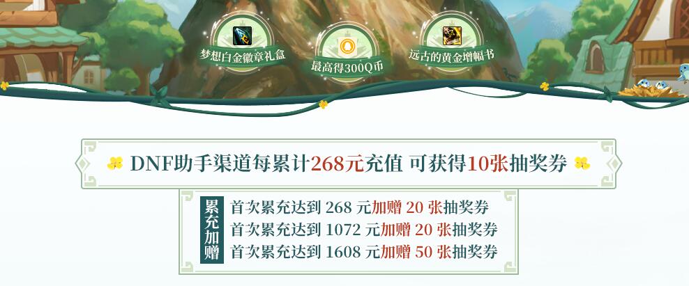打算使用点券购买礼包的小伙伴们要记得参与官方推出的充值活动哦,目前DNF助手中有相关活动,参与后能给玩家带来不少价值不菲的赠品,小伙伴们一定要积极参与~