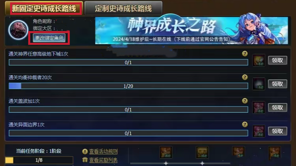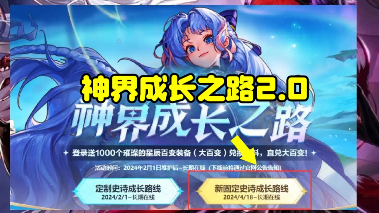 活动被分为【新固定史诗成长之路】和【定制史诗成长之路】两个,前者就是神界成长之路2.0,后者就是神界成长之路1.0。