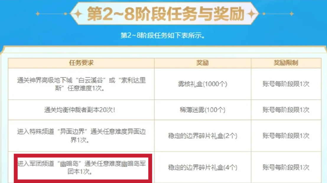 【1】通关1次幽暗岛,领取4个稳定的边界碎片。