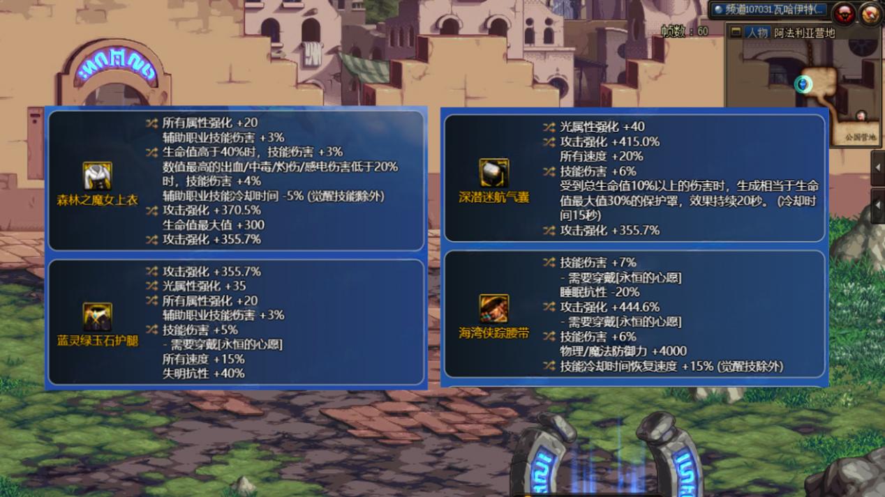 【2、魔女上衣】直伤7技攻、攻强3705、攻强3557、全属强20。