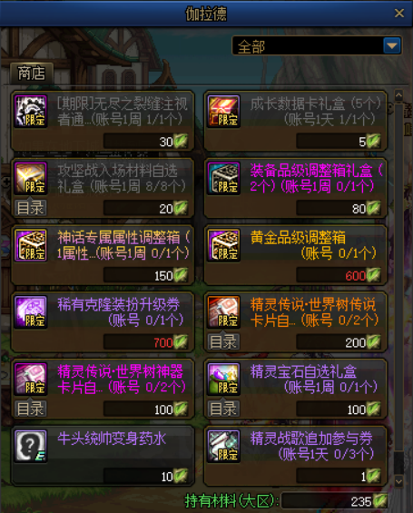 A:精灵传说活动的奖励,分为“世界树重生”与“NPC伽拉德商店”两部分。