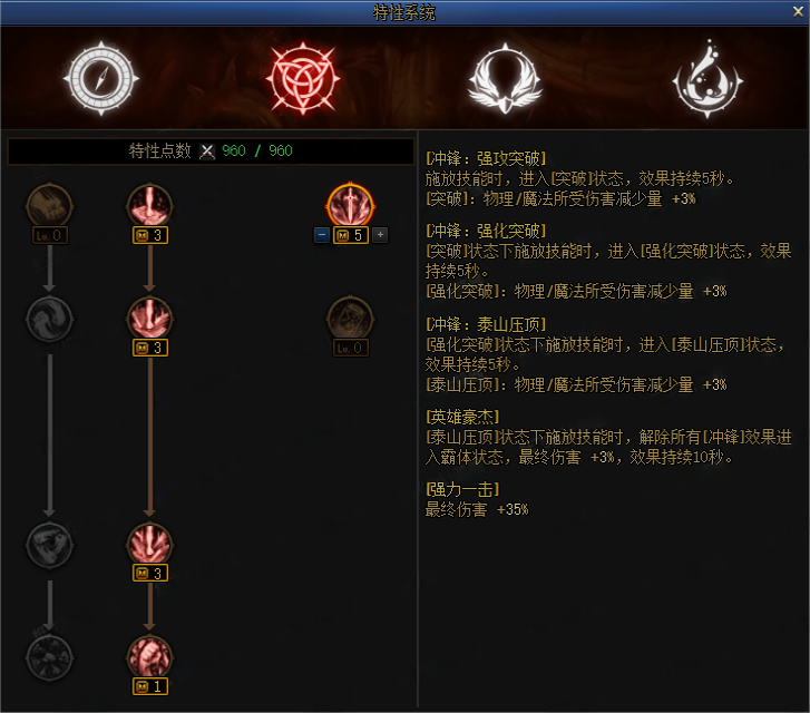 【线路二】冲锋:强攻突破3、冲锋:强化突破3、冲锋:泰山压顶3、英雄豪杰1、强力一击5。
