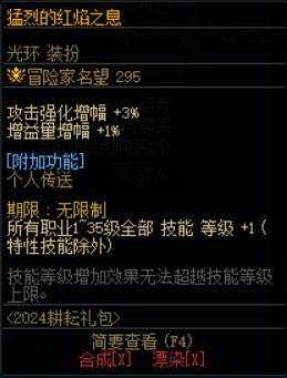 守护者、男格斗家、女鬼剑士、暗夜使者喜提本次耕耘礼包的至尊装扮,至尊装扮的品质为稀有,可以触发稀有装扮相关套装属性,属性和天空套是对等的。且作为联动款装扮,外观也比普通天空要稀有。
