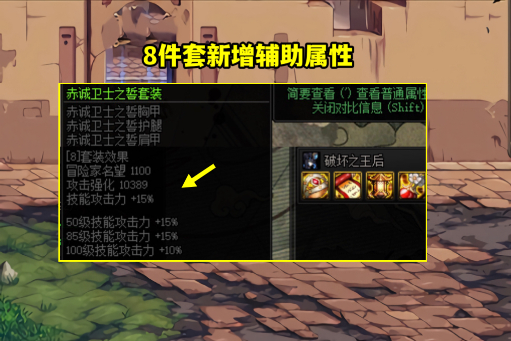 在8件套套装属性中,加入了“辅助属性”,包括2个词条: