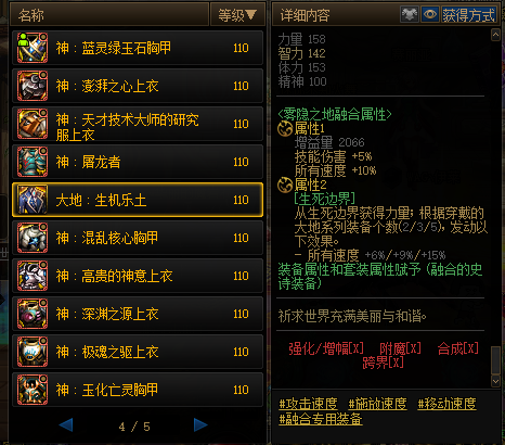 大地-单件固定属性5%技能攻击力,其中上衣提供10%所有速度加成,其余部位提供功能性加成;套装属性提供所有速度加成。在人均缺速度的自定义版本,大地可以说是万金油的选择,单件提供的5%技能攻击力又保证了该套装下限不会低。总结:万金油,闭着眼选。