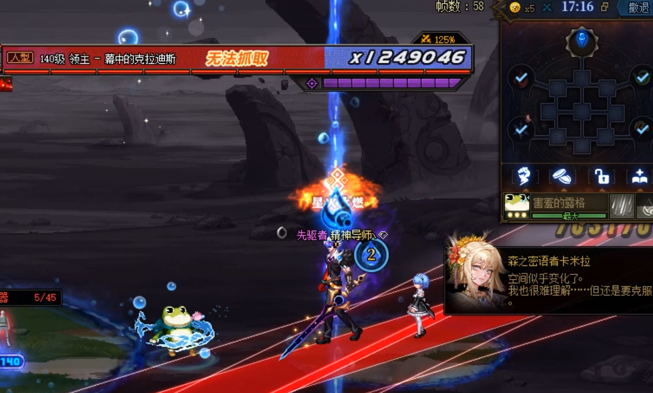 除此之外,塞米亚尼的破防机制-火焰地狱有所变化,塞米亚尼进入破防机制后跳跃到地板上后不再是直接让地板消失而是让地板上生成一块石头,需要将石头捡起并触碰(普攻)boss才能完成1次机制,完成6次后boss破防。