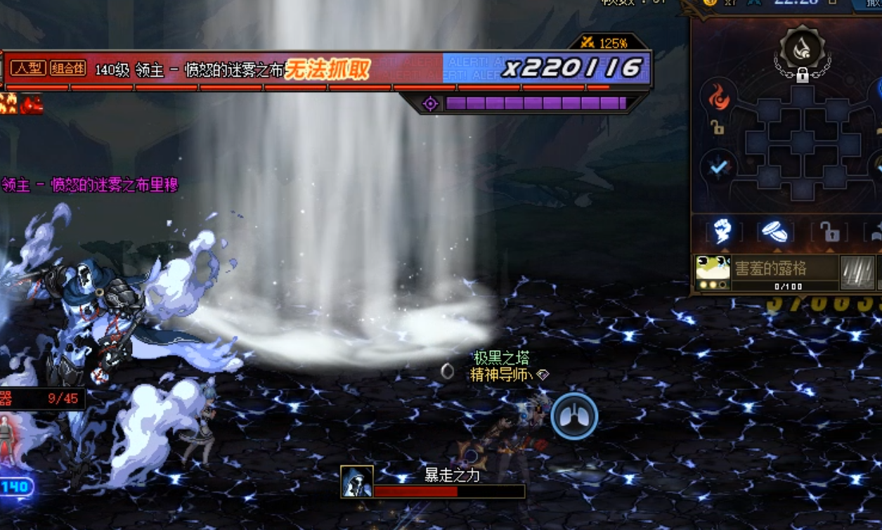 第二个新机制是旋转暴风机制,布里穆逐渐召唤三个由龙卷风组成的墙体组成像电风扇一样的结构并且以逆时针旋转,需要跟随其空白处以逆时针前进躲避风墙。