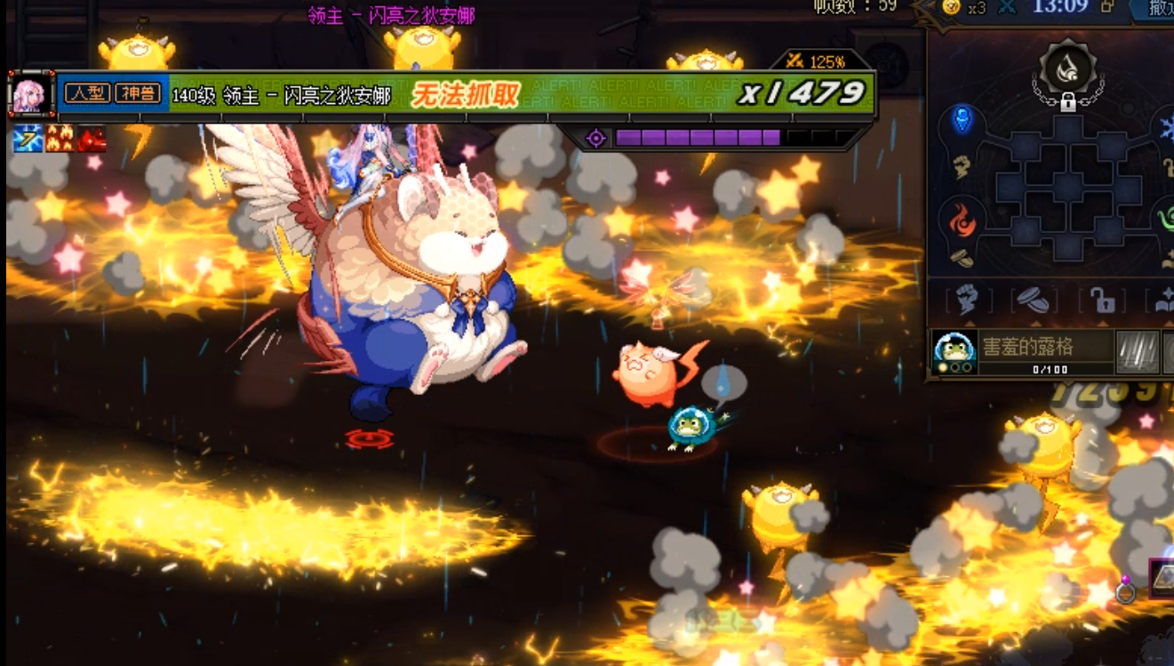 闪亮的狄安娜第一个新增机制是精灵旋转,召唤三波小精灵围绕狄安娜进行旋转并落地弹跳,对被碰到的玩家造成伤害和击飞。