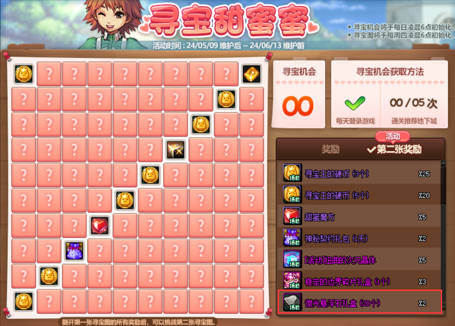 每日登录游戏和通关推荐地下城即可获得寻宝次数,在活动界面即可进行寻宝和获得活动道具寻宝王的硬币。在赛丽亚房间的活动NPC处即可便捷参与活动以及打开活动商店。