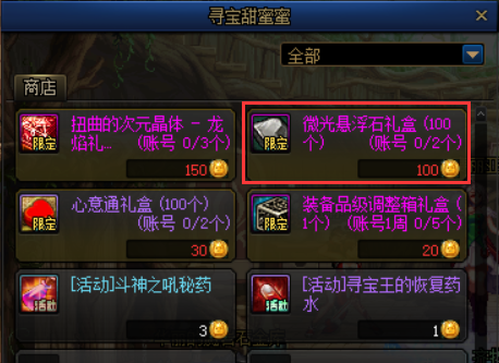 无论是活动商店还是寻宝图当中,可以产出大量的微光悬浮石,可以帮助小号快速制作大百变。
