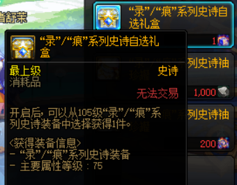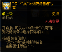 190个史诗灵魂可兑换一个“录”/“痕”装备(手镯/上衣部位)自选礼盒。
