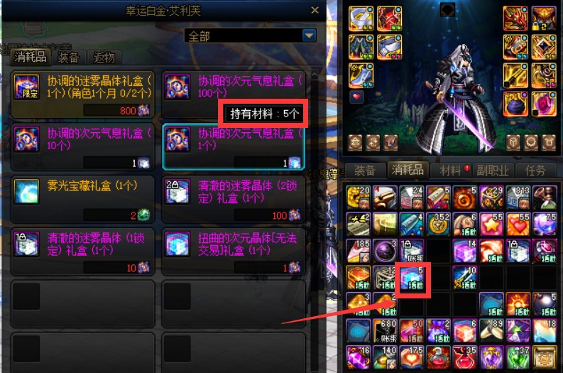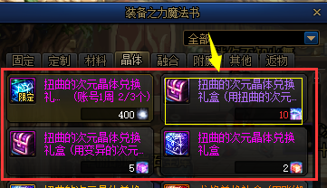 商店新增了协调的次元气息材料,扭曲的次元晶体可以以1:1的比例兑换该材料。