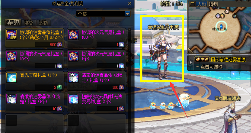 晶体商店在晴烟广场NPC幸运白金艾利芙处。