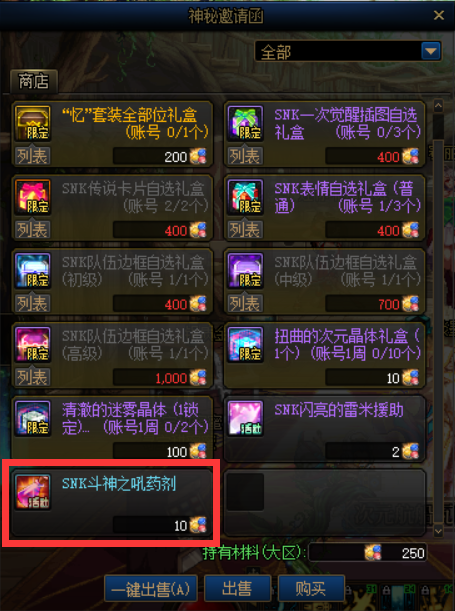 最后是司机商店当中,兑换完全部限定奖励,需要消耗2175嫩芽硬币,兑换斗神之吼秘药礼盒(5个)需要10嫩芽硬币,那么全勤的条件下还可以兑换(3000-2175)/10≈82个礼盒,共计410个斗神之吼秘药。