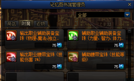 大魔法师的次元回廊亦是如此,可以在记忆图书馆的管理员处,兑换旧版光迹商店当中的附魔宝珠。辅助装备和腰带部位的附魔,价值也算不错 。