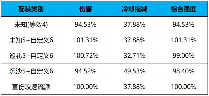 直伤攻速5+6的配装以直伤攻速流派为基础,防具与手镯6件装备保持直伤攻速流派的搭配不变,将右侧的项链、戒指与特殊部位共5件装备更换为未知套,综合强度还比直伤攻速流派高出约1.3%,大幅超过11件未知套的强度。