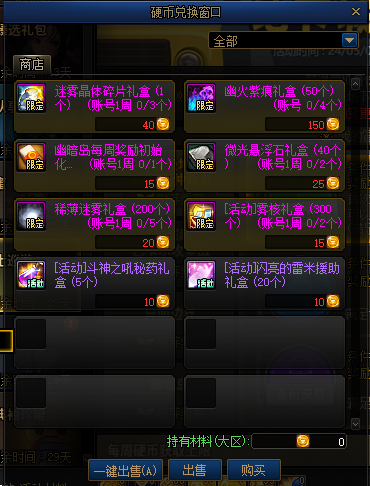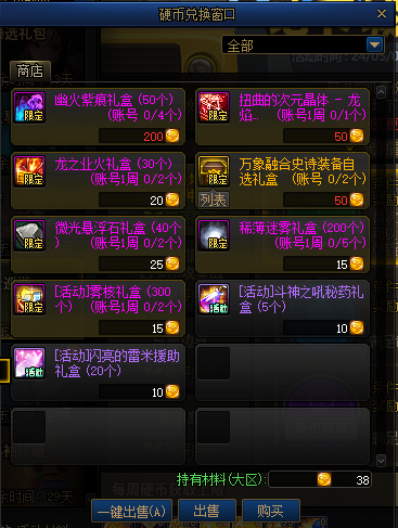 即使在兑换心意点盒子、扭曲的次元晶体–龙焰礼盒、微光悬浮石礼盒、每周换完装备品级调整箱礼盒,也只需要总计1210个硬币。剩下的的硬币也足够我们兑换171个斗神。
