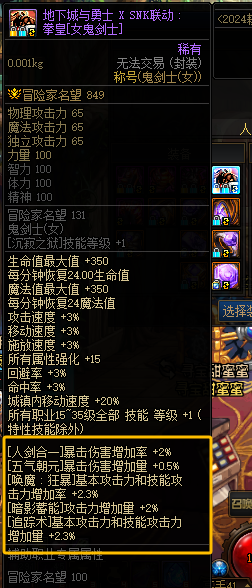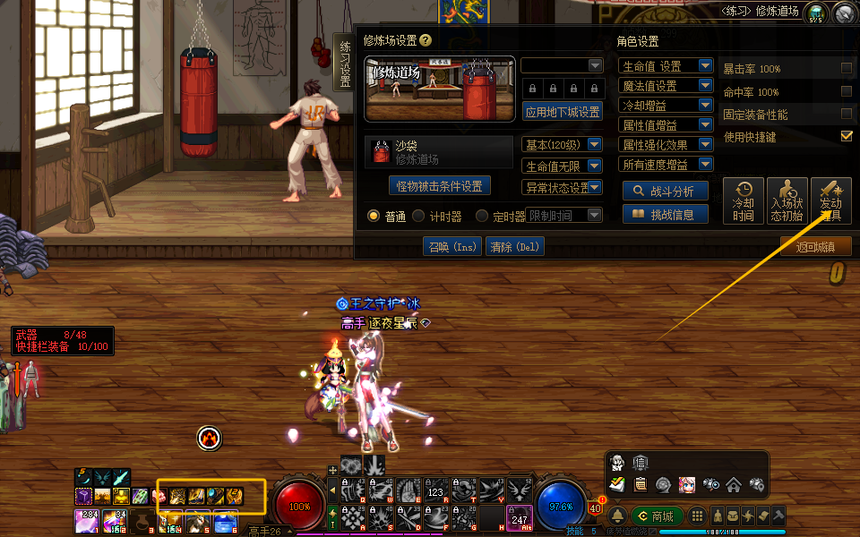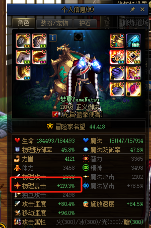 查看暴击情况时,建议进入修炼场,加上增益强化技能,发动道具后进行查看(部分职业buff会加暴击,部分装备会进图后加暴击)。