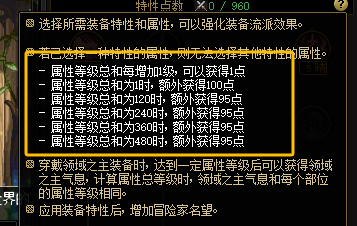 神界版本更新了装备特性,装备升神界装备以后,升级装备词条等级即可获得特性点。使用特性点学习特性后即可获得伤害和名望的提升。
