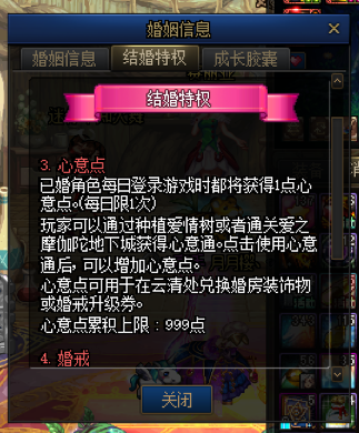 已婚角色,每日登录游戏都可以获得1点心意点。