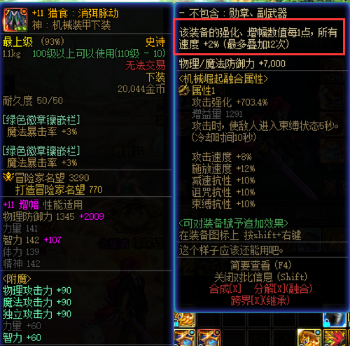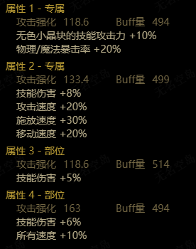 需注意,选择攻速直伤流的话一般情况下会将机械装甲下装增福至10、11,获得攻速加成,从而保证攻速鞋的触发。