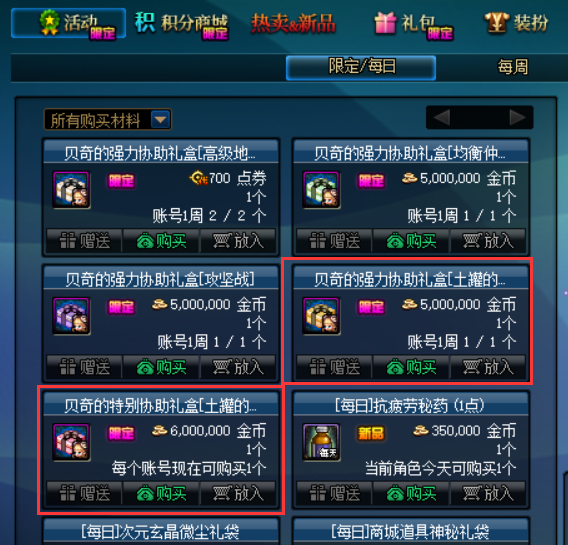 在5.23版本更新当中,上线了全新贝奇的强力协助礼盒,分别可以使用500万金币和600万金币购买土罐的袖珍罐礼盒。前者每周可以购买一次,打开之后可以获得6个袖珍罐,后者账号只能购买一次,打开之后可以获得8个袖珍罐。有需求的话,可以考虑入手哦。