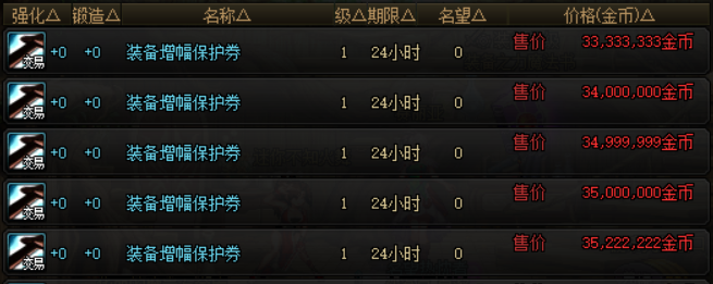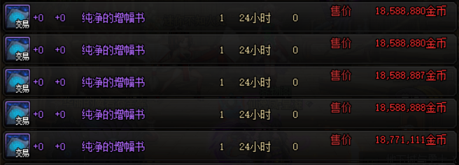 相关的增幅资源还有一次性增幅器礼盒(20个)、纯净的增幅书和装备增幅保护券,在拍卖行当中的售价分别为2000万、1900万和3300万,有增幅需求的小伙伴可以根据自身的实际情况选择上述道具购买。