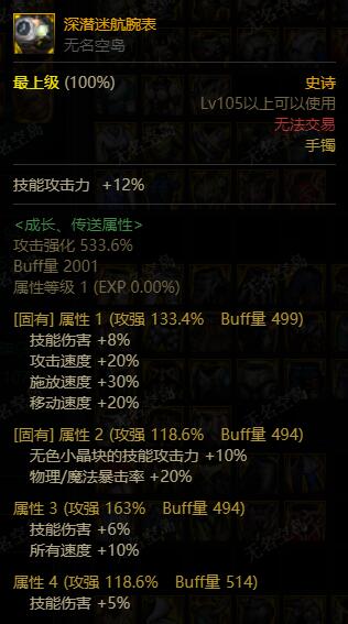 次选属性:攻击强化+355.7%;全属强+20;单属强+20;全属强+18