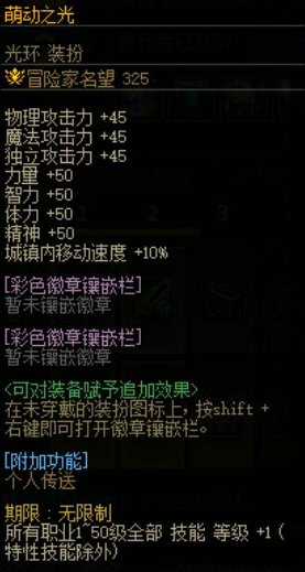 本次的光环为带着徽章孔的属性光环,裸光环名望值为325,拿给小号使用非常适合。