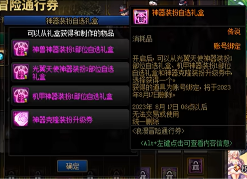 本次的神器装扮不再纯粹是光翼天使神器装扮了,而是加入了神兽神器装扮礼盒、机甲神器装扮礼盒、神器装扮升级券,神兽神器装扮作为最经典的一套装扮,喜欢的小伙伴一定不要错过这次机会。