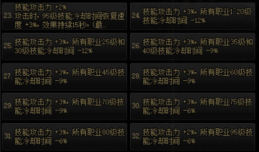 某个阶段的技能在输出中占比特别高的职业可以选择24-32号词条中适合自己职业的。例如蓝拳和影舞者可以选择31号。
