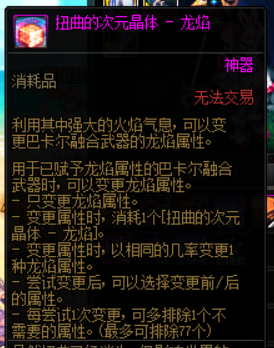 巴卡尔攻坚战困难模式于6月15日登录国服地下城与勇士,困难巴卡尔攻坚战会给我们带来全新的攻坚奖励:扭曲的次元晶体-龙焰,使用这个可以为已经融合的巴卡尔武器赋予第三词条。笔者在这里就为各位小伙伴简单分析一下这个东西的用法,以及如何选择第三条武器贴膜属性。
