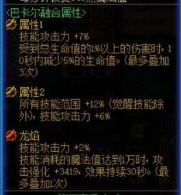 这类词条在龙焰词条中不仅提升技能攻击力还提供攻击强化,对角色的提升甚至大于在武器1、2词条中最强的种族提升技攻词条。