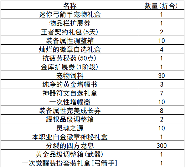 弓箭手通行证的各阶段经验组成勇士们可以见下表: