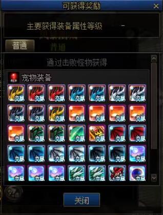 击杀精英怪或领主可能掉落可交易的宠物装备、100级神器换装等稀有道具。