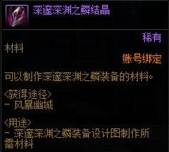 深邃深渊之鳞结晶的道具交易类型为账号绑定,用于制作100级神器换装(需要设计图)。
