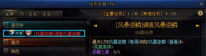 注意外传任务[[风暴幽城]新的裂缝]需要开启风暴逆鳞后才能领取,若没有开启风暴逆鳞副本,则需要先完成外传任务[[风暴逆鳞]调查风暴逆鳞]。