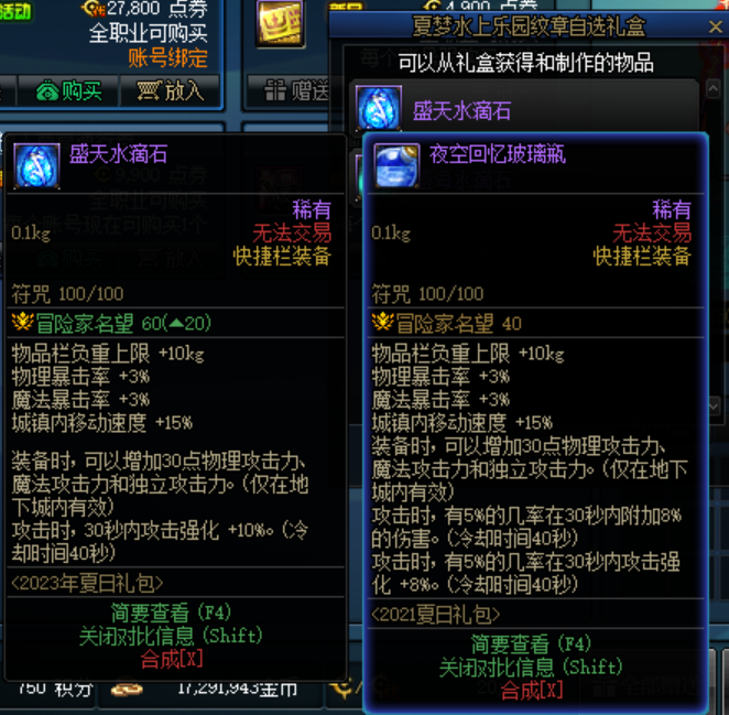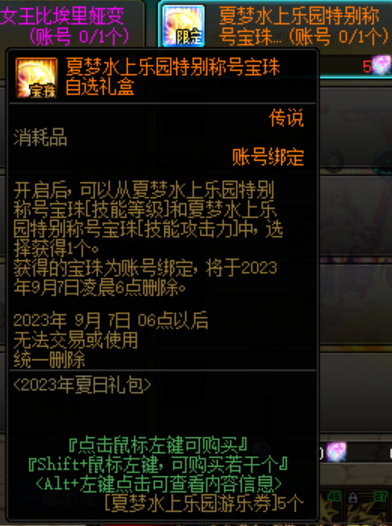 本次礼包内容当中的称号定义为过渡称号,但是可以使用礼包内的夏梦水上乐园游乐券兑换一个称号附魔宝珠,这个宝珠的属性与新春礼包内称号宝珠的属性相同,可以作为称号部位毕业附魔使用。