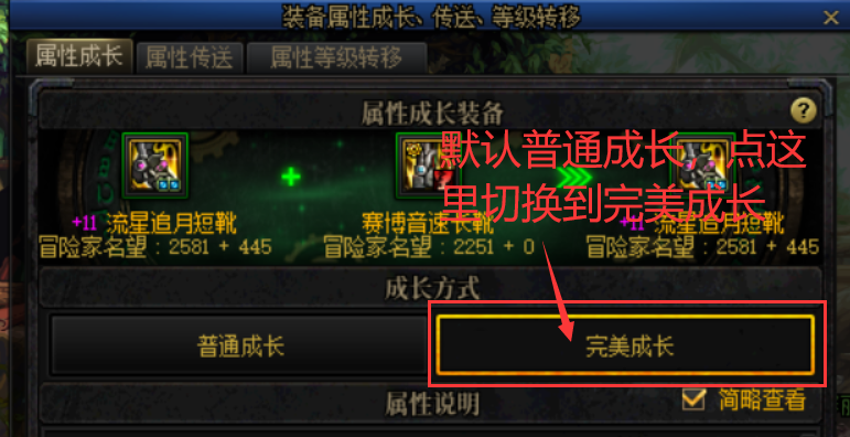 材料装备LV达到60以上、且角色装备LV在70以下,可使用完美成长;