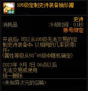 定制属性史诗装备袖珍罐兑换需要消耗15个未知的异次元碎片,每个账号每周可以兑换两个,使用之后可以在四个系列的定制属性史诗装备当中随机获得一件。