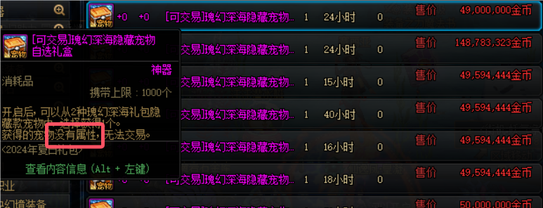 在瑰幻深海探险神秘包裹当中是可以开出可交易状态瑰幻深海隐藏宠物礼盒的,但是需要注意这个宠物礼盒只有外观作用,是没有属性的,小伙伴们不要买错了。