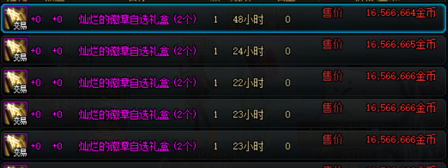 打开后可以选择获得一个白金徽章,可交易1次,目前拍卖行的价格为4400w金币左右。