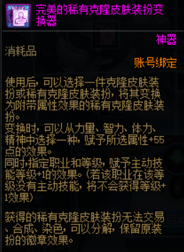 该变换器可以直接将克隆皮肤升级至稀有克隆皮肤,并且可自选属性和技能。